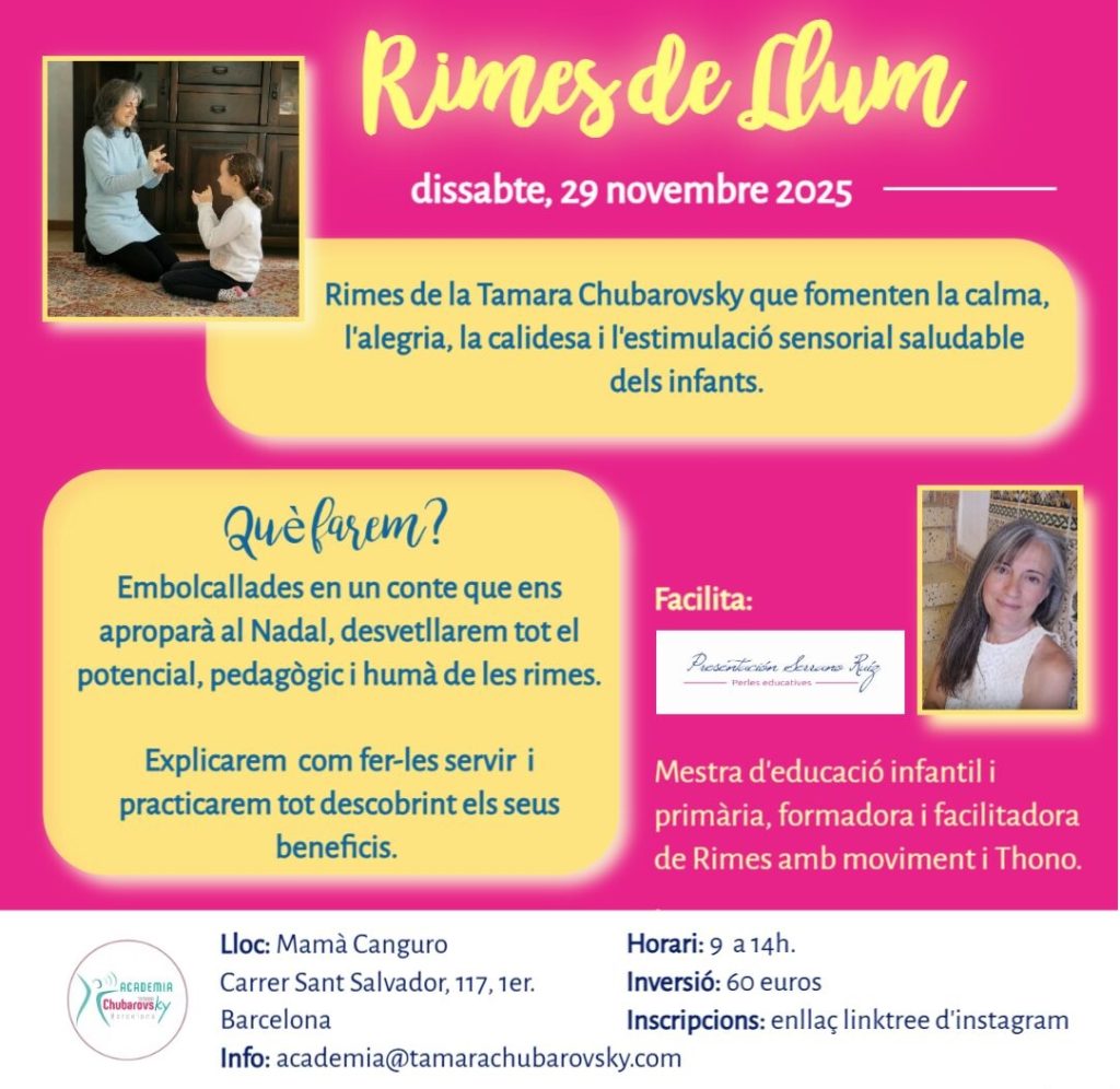 Taller eminentemente pràctico, con breves introducciónes teóricas y reflexiones, para experimentar y disfrutar juntas los múltiples beneficios y posibilidades las Rimas, con la mirada puesta especialmente en algunas características de los niños y niñas con TEA.