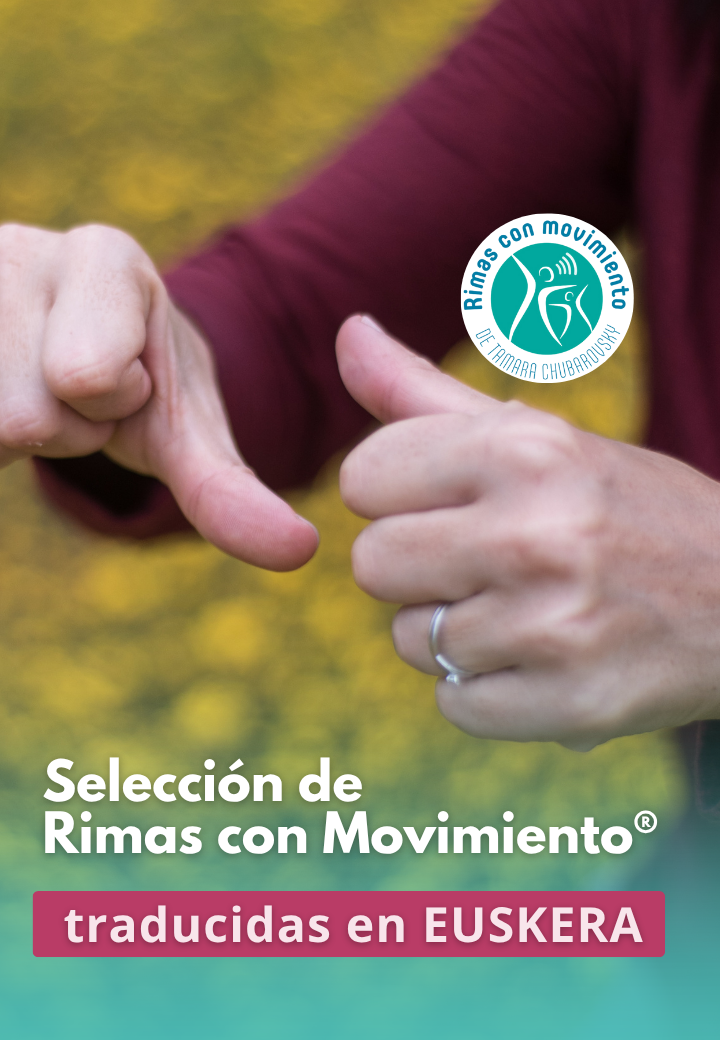 El recurso por excelencia eres tú y tu propio habla. Con esta selección de Rimas con Movimiento® en euskera, podrás transmitir el idioma de forma viva, rítmica y afectiva, favoreciendo la expresión, el vínculo y el desarrollo integral de los niños a través del movimiento y la palabra.